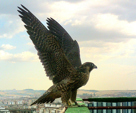 En la foto, nuestro halcón Teresa en vuelo pocos días después a la apertura del hacking.