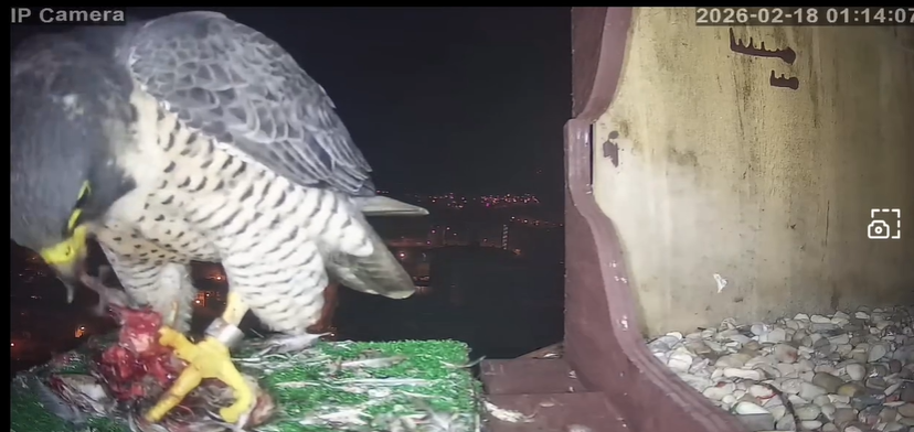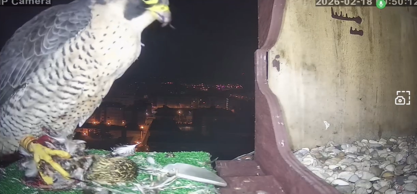 Pilar, después de volver del Parque Natural Sabinares del Arlanza-La Yecla, todavía le quedan fuerzas para cazar durante la noche un ejemplar de chorlito dorado que se come tranquilamente en varias sesiones en su caja nido.