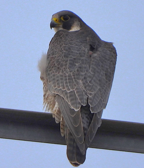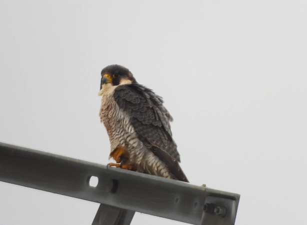 A las 09:30 am cuando la localizamos ya estaba haciendo la digestión. Minutos antes había cazado una paloma. Un macho de peregrino también juvenil apareció de repente y atacó un grupo de palomas y Cova levantó el vuelo y se unió a el por unos segundos pero abandonó rápido. Ella ya había comido… Tenia el plumaje perfecto y se le veía una buena condición física. Le deseamos suerte en su peregrinación.