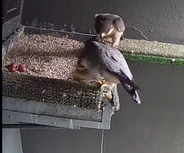 Ahora toca esperar unos días o semanas para que empiece la puesta, incubación, etc. Esto es sólo el principio, pero estamos muy contentos al ver que dos halcones del proyecto al fin se emparejaron y tienen un territorio bueno y relativamente seguro. Con un poco de suerte este año habrá pollos!!