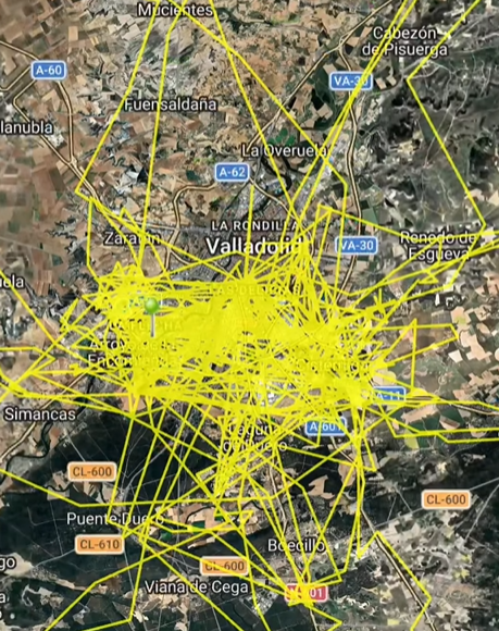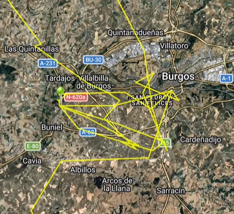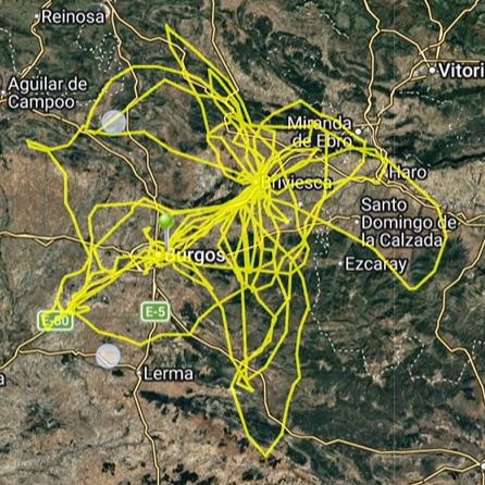 Un día realiza un vuelo de ida y vuelta hasta Ariza y el embalse del rio Ebro. Luego regresa a Valladolid y continúa ocupando su territorio, evitando siempre el territorio de la pareja reproductora que crían en Valladolid desde hace varios años.